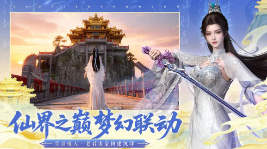 还原细节:游戏内完整复刻老君山金顶建筑群,包括琉璃金殿、云海石阶等标志性景观,支持“踏云御风”移动,可欣赏金顶日出、云海飘渺的沉浸式场景,部分角度与线下老君山实景高度重合,实现“线上云游+线下打卡”的双向联动;